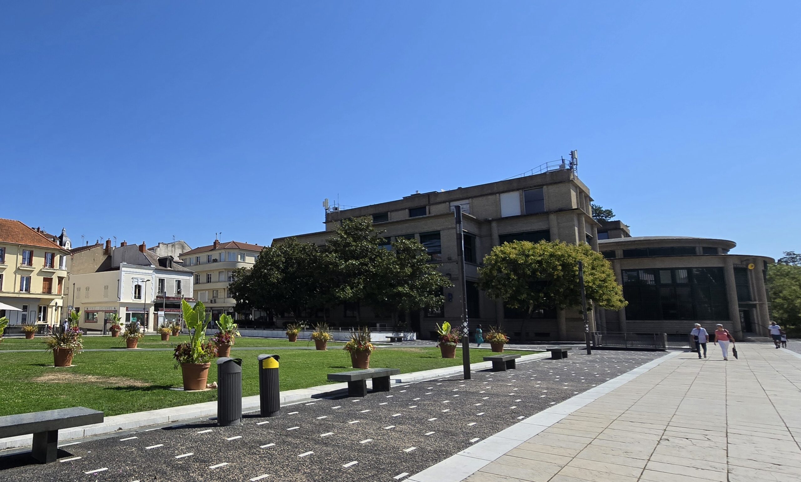 Située place Charles-de-Gaulle, c’est un superbe édifice inauguré en 1935. Conçue par l’architecte Léon Azéma, Grand Prix de Rome, cette Poste incarne l’élégance fonctionnelle des années 1930. Sa façade en béton vibré mêle gravillons jaunes de la Saône et gris de l’Allier. À l’époque, elle répondait à l’essor du thermalisme et à l’afflux de visiteurs internationaux. Elle abritait même un salon de correspondance et des cabines téléphoniques saisonnières.